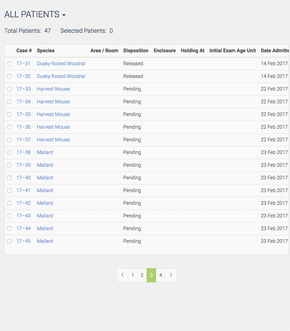 Example - Bob Smith brings in 10 mallard ducklings, and you use choose 10 on the "Number of Patients".