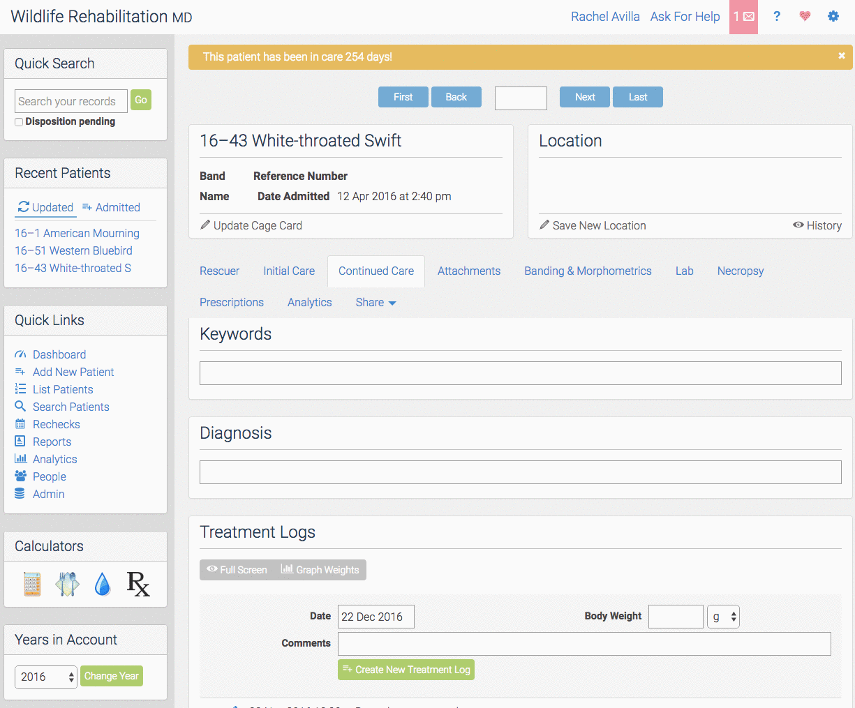 I have received a few questions about what happens to the records when a new year starts. So, I thought it a good idea to send out some information and reminders of what goes on behind the scenes and the best way to use WRMD the first month or so of the new year.Dec 31 2016 at around 10:00PM PST (I suggest not being on WRMD), we will start to prep the change over. What basically happens is that we start the counting over at 17-1. As you may have noticed WRMD defaults to the current year we are in when you first sign-in. There are a few inconveniences that we can not help when this happens, but we have suggestions on how to work with the system.If you want to view 2016 patients you have to be in the year 2016. There are 3 ways to do that. (Disclaimer: because it is not 2017 yet my examples are for 2016 and 2015, but the methods stay the same)